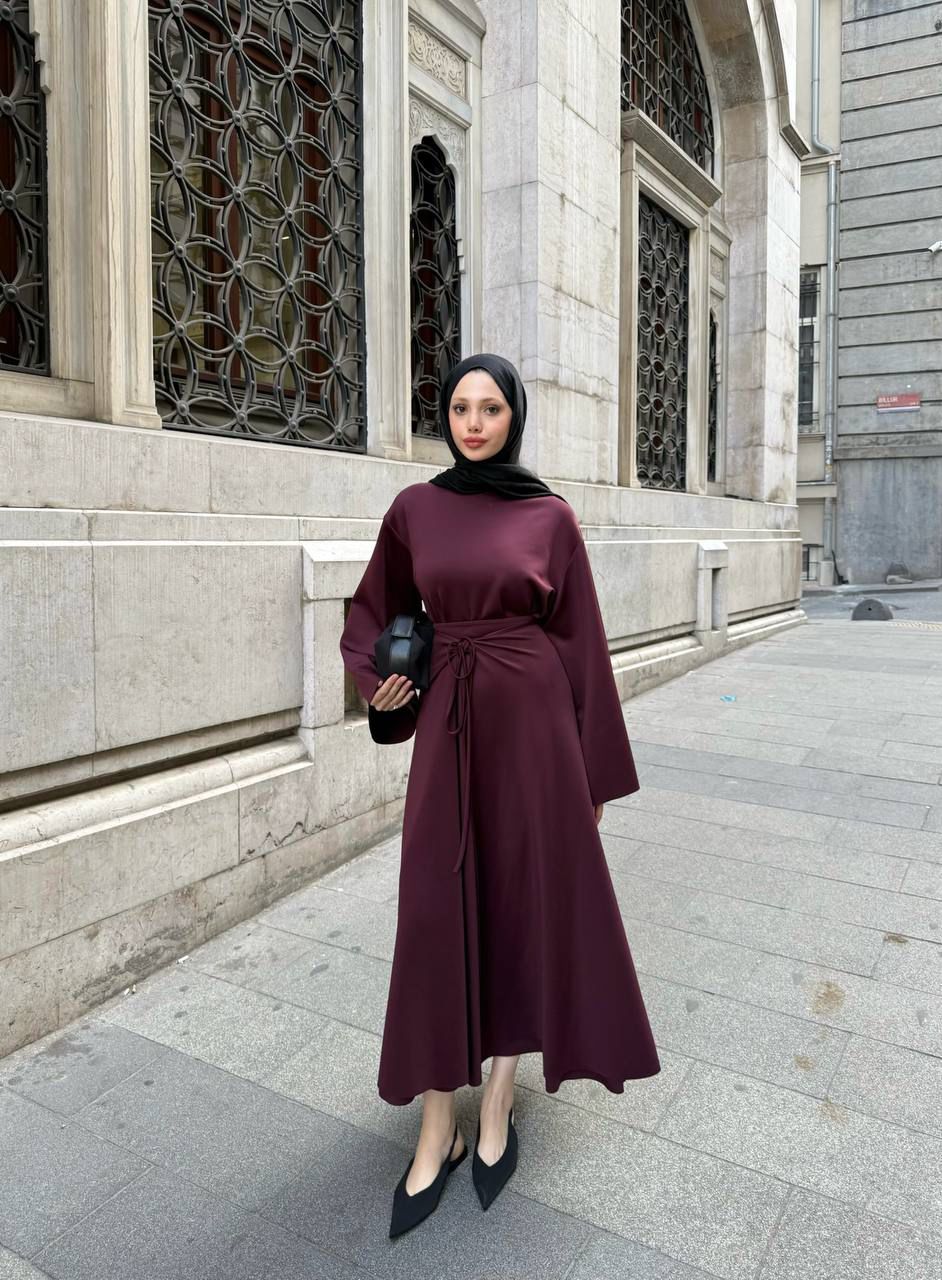 طقم أنيق بلون البرغندي فاخر يجمع بين الرقي والبساطة في تصميم واحد. يتميز بجزء علوي بقصّة ناعمة وأكمام واسعة تمنح حرية وأناقة، مع تنورة طويلة منسابة تضيف لمسة من الفخامة والأنوثة. الحزام الرفيع عند الخصر يبرز القوام بأسلوب راقٍ يعكس الذوق العصري الرفيع. مثالي للمناسبات الخاصة أو الإطلالات اليومية الراقية.